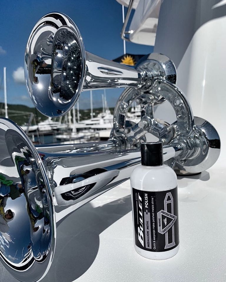 Medallion Marine Metal Polish is brilliant on Aluminium, Brass, Copper, Stainless Steel, Chrome & Titanium and the shine lasts longer than most leading brands on the market today.